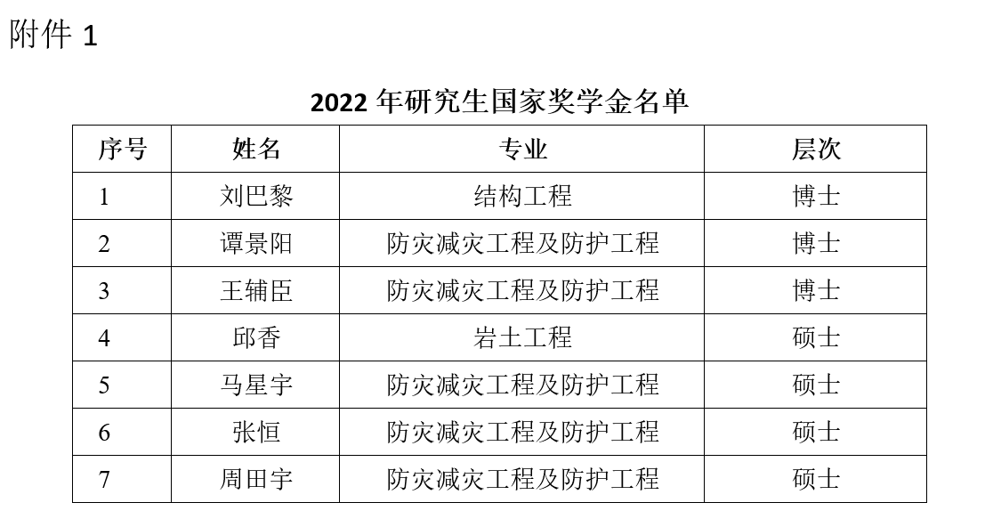 發布時間: 2022-10-25 點擊數量:4394根據《中國地震局工程力學研究所研究生國家獎學金評審辦法》《中國地震局工程力學研究所研究生學業獎學金管理暫行辦法》等有關要求,我所開展了2022年度國家獎學金、博士研究生第二、三、四學年學業獎學金評選工作,現將評選結果進行公示。公示期2022年10月25日至2022年10月31日。如有異議,請以書面形式向研究生管理辦公室具名提出。
