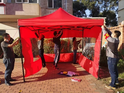 接到檢測點遷移指令后,支部黨員干部又緊急集結,調用研究所應急帳篷在居民區空曠場地連夜搭設核酸檢測點,和下沉黨員一起建立引導區,鋪貼安全線,迅速完成應急設備的安裝調試,保證核酸檢測工作順利進行。為避免帳篷被大風翻卷,物資受損,室外核酸檢測點每日都要重新搭建。為了讓社區工作人員充分休息,支部黨員和志愿者凌晨5時前到崗,確保各項準備工作在5時40分前就緒。每次檢測結束,他們又將全部設備設施收集整理,運回倉庫妥善保管。