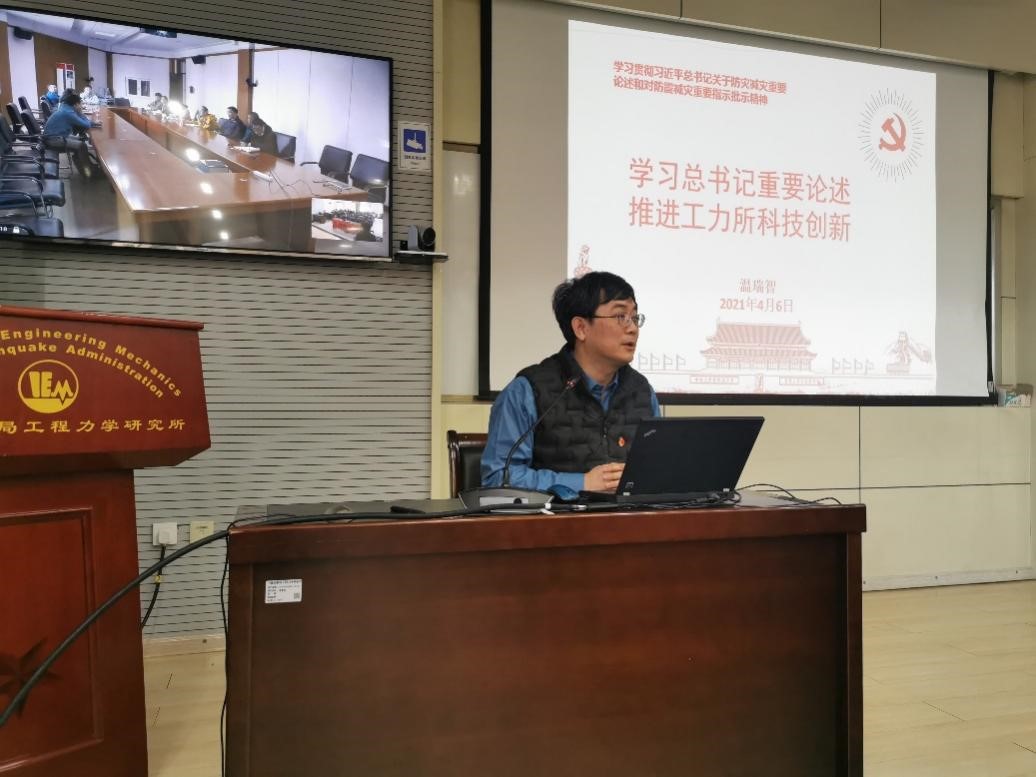 發布時間: 2021-04-09 點擊數量:18624月6日下午,根據工力所黨史學習教育安排,黨委委員、科技發展部主任溫瑞智同志在三樓報告廳為全所科研人員做了“學習習近平總書記重要論述 推進工力所科技創新”專題培訓。