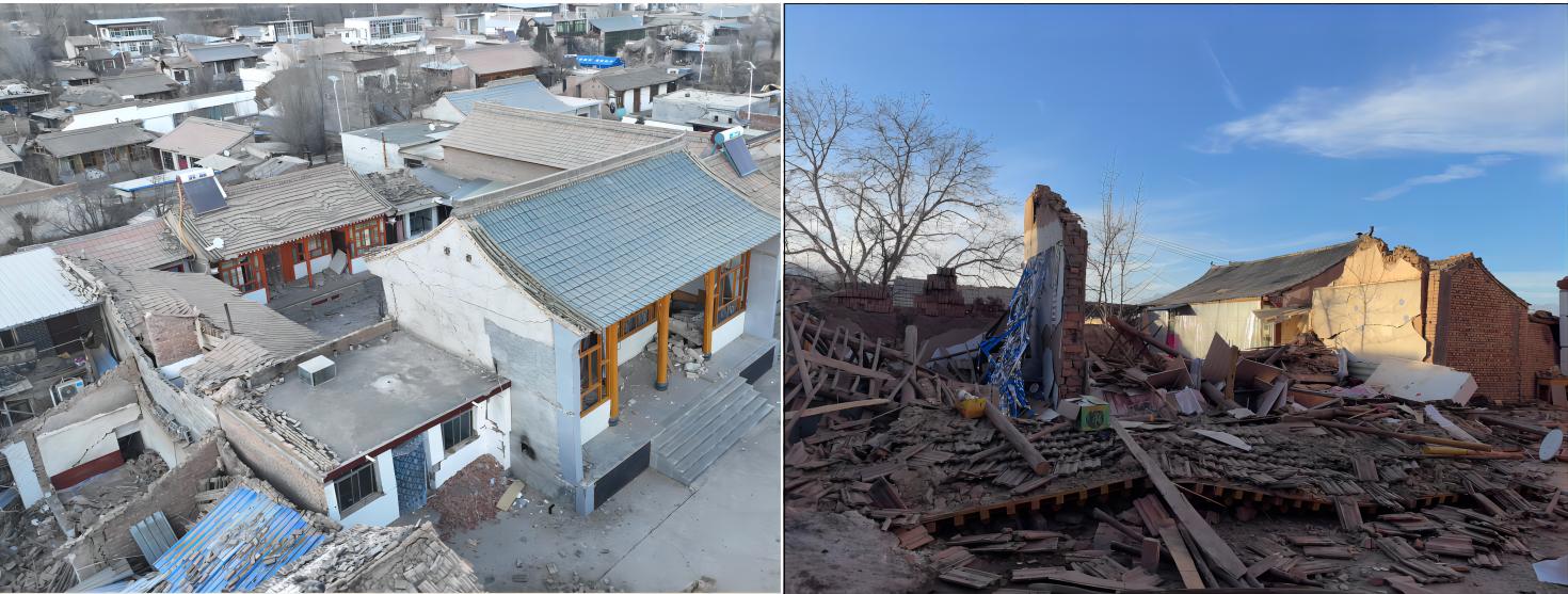 3. 劉集鄉 團結村約束砌體結構基本完好。少數磚木結構發生溜瓦、山墻交叉裂縫等震害,多數磚木結構嚴重破壞,出現外縱墻外閃、屋頂局部坍塌等震害。絕大多數土坯結構倒塌。估計地震烈度:8
