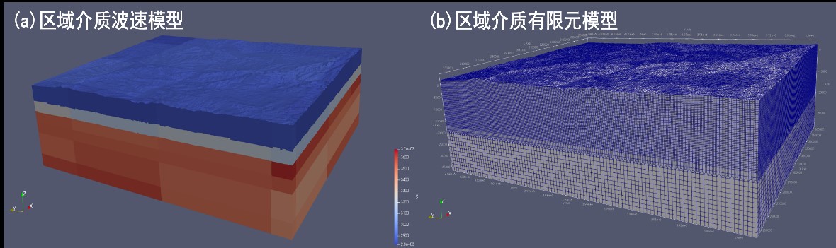 圖5 區(qū)域介質(zhì)波速模型與有限元模型